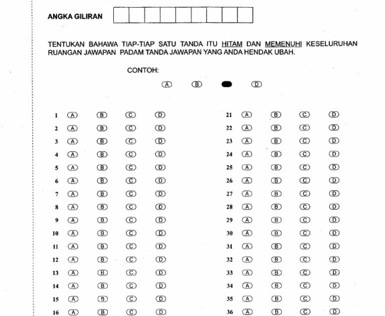 Contoh Borang Jawapan Soalan Objektif - Soalan By via soalanby.blogspot.com